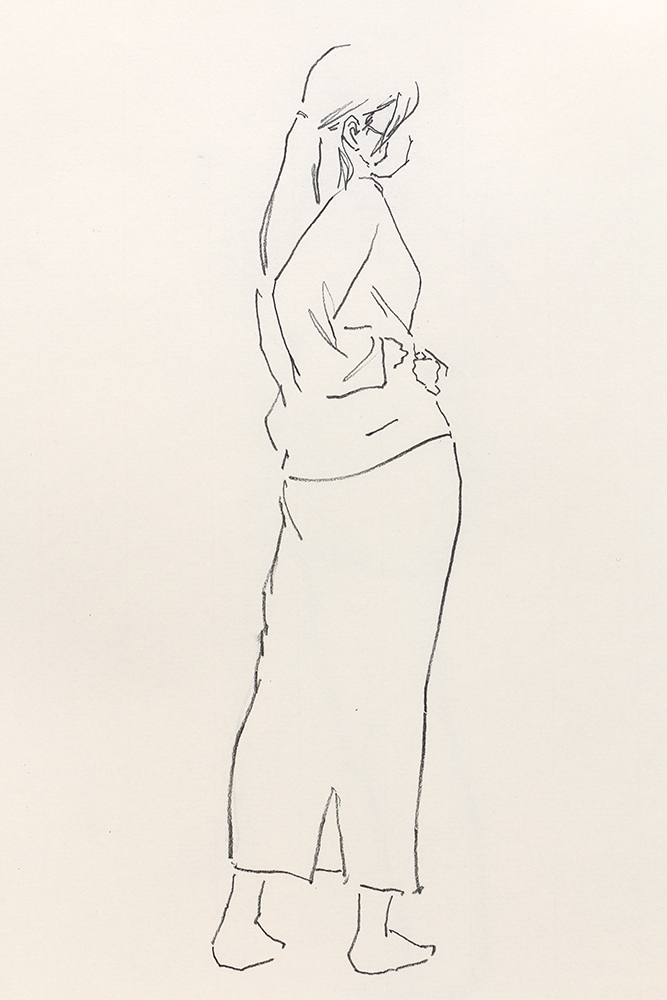 croquis 鉛筆で描く5分間クロッキー 2025年11月16日 コメントはまだありません 令和7年11月10日(月)の5分間クロッキーです。どの線を捉え、どこを省略するか。全体のバランスを見てバランスのとれた美しいクロッキーを目指しています。 Continue Reading