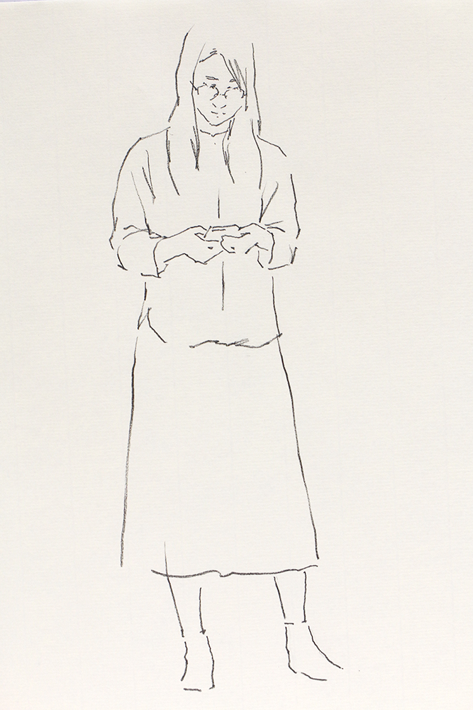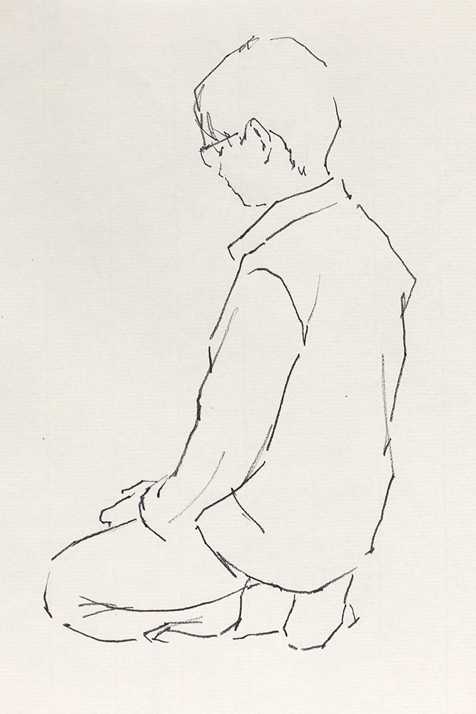 croquis 鉛筆で描く5分間クロッキー 2025年7月22日 コメントはまだありません 令和7年7月21日(月)の5分間鉛筆クロッキーです。おおよそ頭が2分、上半身が2分、下半身が1分のペース配分で描いています。特に表情を捉えるのに時間がかかってしまい足元がギリギリになる傾向が強いのでゆとりある時間配分ができないものか、省略のポイントを探っているところです。描かなくてもよいところは省略を、抑えるところはしっかり強い線で。メリハリをつけて美しくおしゃれなクロッキーを目指しています。 Continue Reading